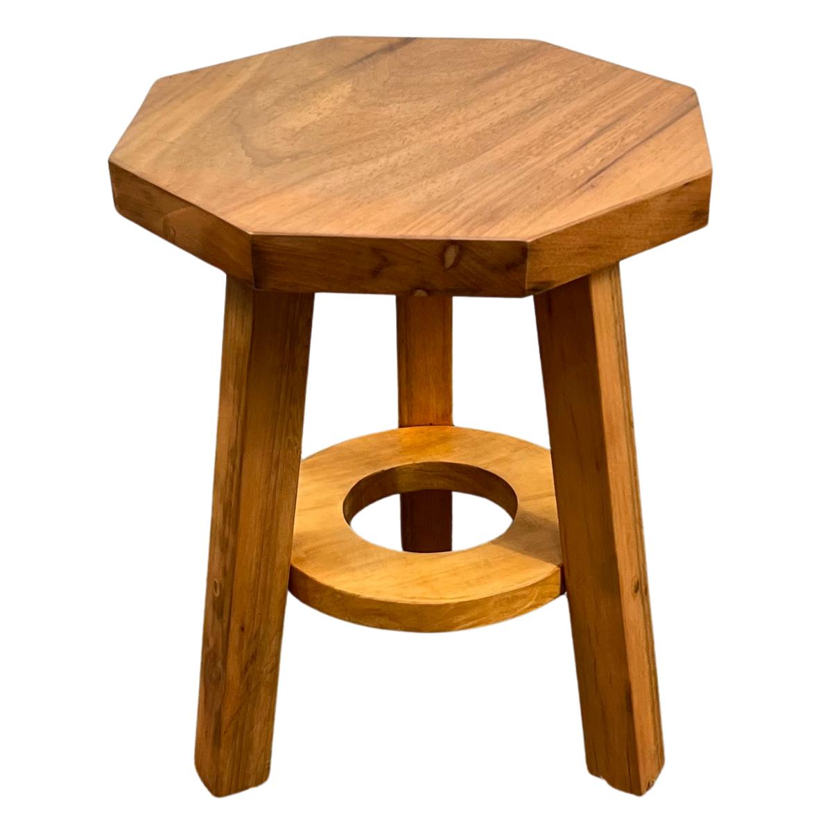 Banco ou mesinha de canto? Essa peça versátil é feita em madeira de demolição mista, com acabamento encerado que realça os veios naturais e garante resistência e durabilidade. Seu design rústico, com tampo octogonal e base reforçada, combina beleza e funcionalidade, podendo ser usado como banco, mesinha de canto ou apoio decorativo.