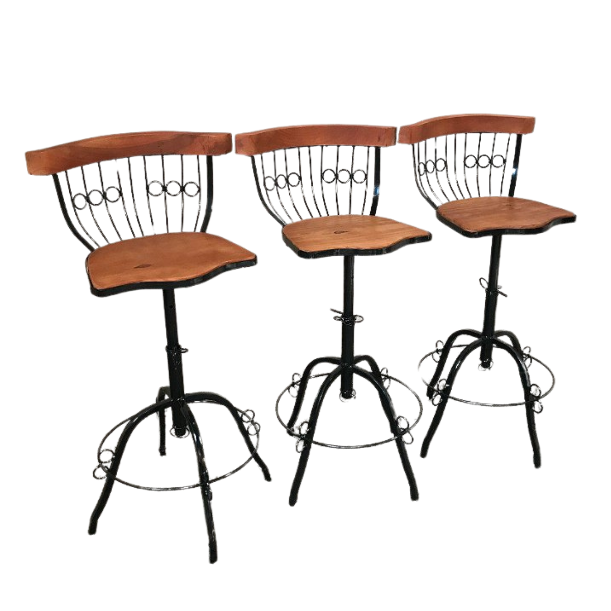 Kit de 3 Banquetas Altas para Bancadas fabricadas em Ferro com Pintura Eletrostática e Madeira Maciça com Acabamento Encerado.